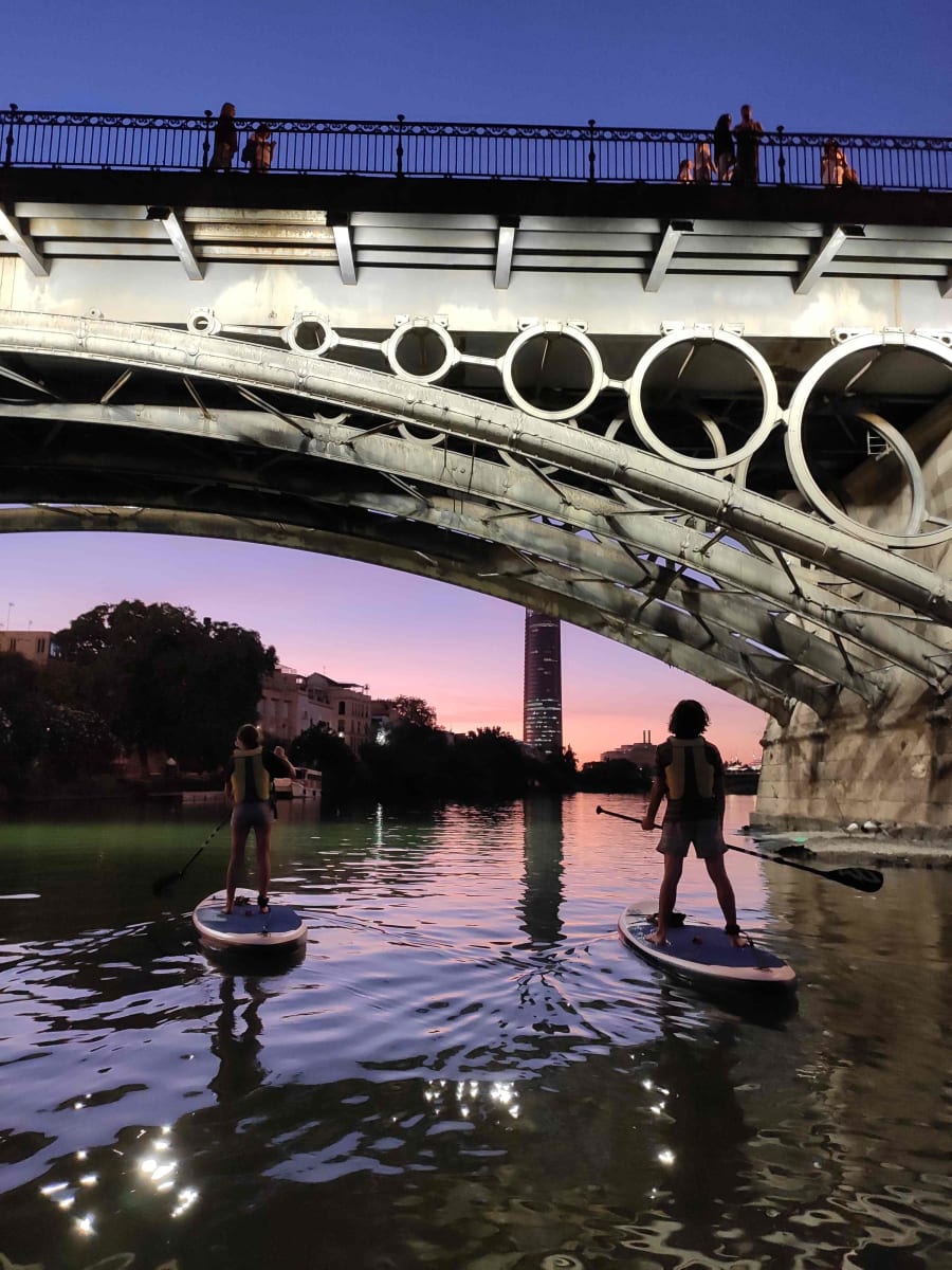 Come and live a unique adventure in Seville with this sunset paddle surfing tour. This experience will start at the famous Calle Betis, where you will meet your expert guide. Before getting on your board, you'll receive a short lesson to learn the basic techniques of paddle surfing.