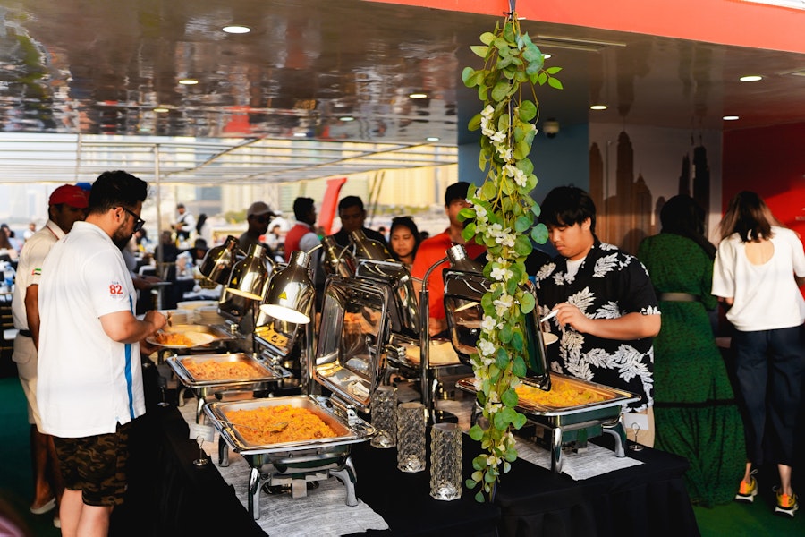 See Dubai from the water with a sunset cruise. Includes a buffet dinner with unlimited soft drinks and live music. Sail the Persian Gulf for about an hour and a half as you take in the breathtaking views of the illuminated city, with buildings such as the Burj Khalifa and Palm Jumeirah.